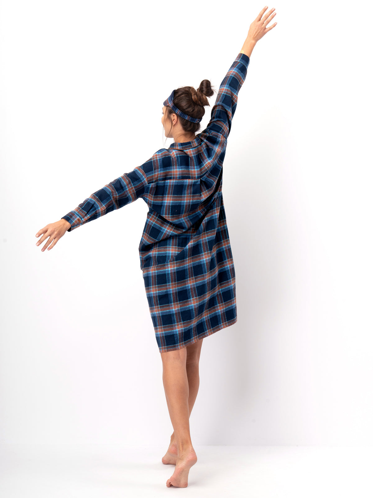 Rozpinana koszula nocna z klasycznym kołnierzykiem to bardzo wygodny krój - obniżone ramię i kontrafałda z tyłu dają dużą swobodę podczas spania.