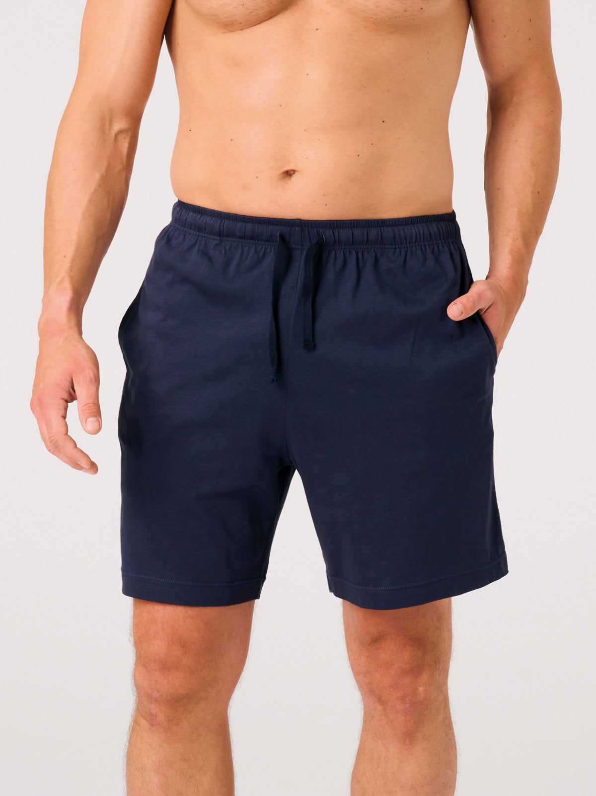 Piżama Key zachowuje trwałość i estetyczny wygląd nawet po wielu praniach. Koszulka posiada okrągły dekolt wykończony elastyczną dzianiną rib, która zapobiega rozciąganiu i utracie formy. Boczne pęknięcia u dołu bluzy zostały wzmocnione ozdobną, bawełnianą taśmą, co zwiększa komfort ruchów. Proste, krótkie spodenki wyposażono w miękką gumę w pasie, zapewniającą idealne dopasowanie, a bawełniane troczki umożliwiają regulację szerokości pasa według potrzeb.