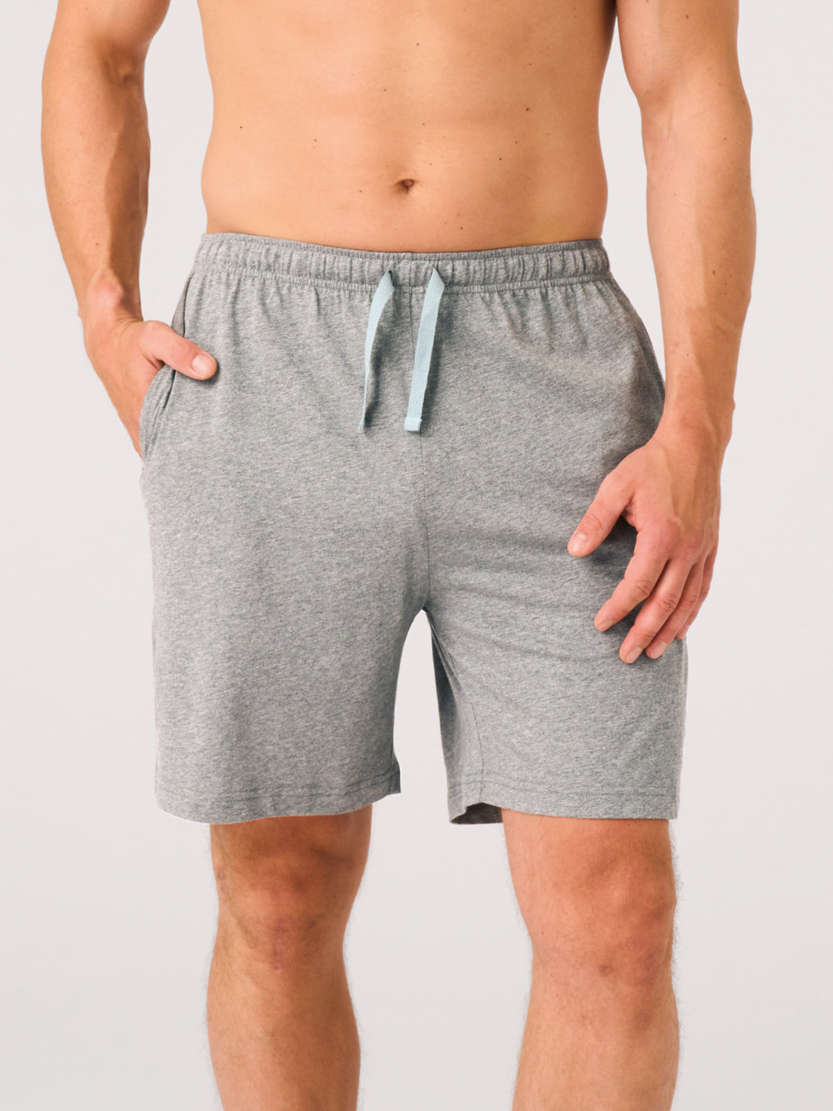 Koszulka posiada klasyczny okrągły dekolt wykończony dzianiną rib, która utrzymuje swój kształt i zapewnia komfort noszenia. Dół koszulki ma boczne pęknięcia wzmocnione ozdobną, bawełnianą taśmą, które zwiększają swobodę ruchów. Proste spodenki mają w pasie miękką, elastyczną gumę, a bawełniane troczki pozwalają dopasować szerokość pasa do indywidualnych potrzeb. Po bokach znajdują się głębokie kieszenie, dodające funkcjonalności. Dzianina melanżowa zastosowana w spodenkach łączy wyjątkową trwałość kolorów z subtelną, ciekawą strukturą, która nadaje całości nowoczesny i interesujący charakter.