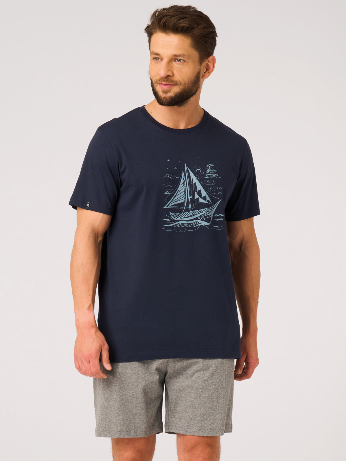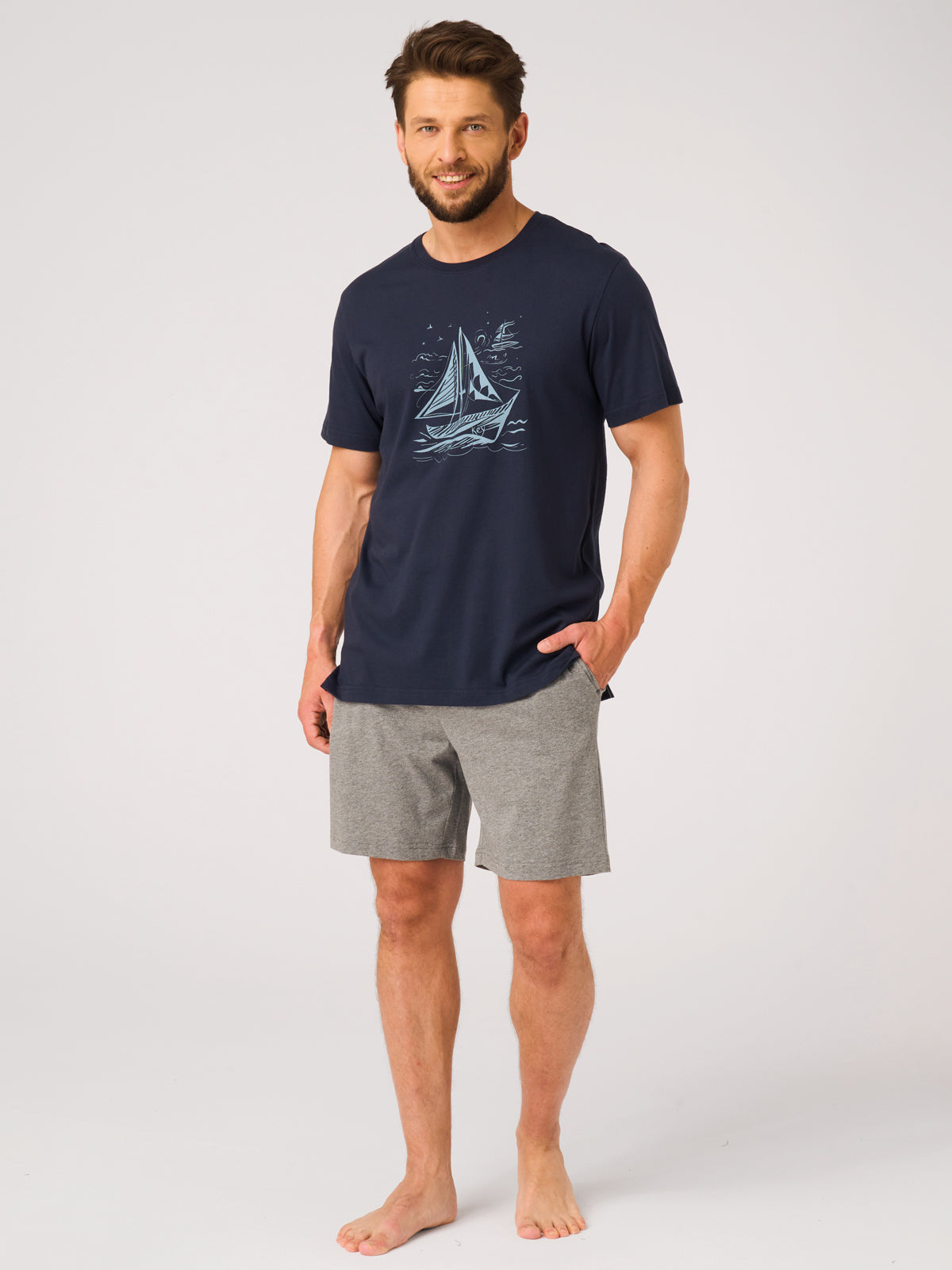Klasyczna letnia piżama męska, która łączy wygodę z subtelnym, wakacyjnym stylem.