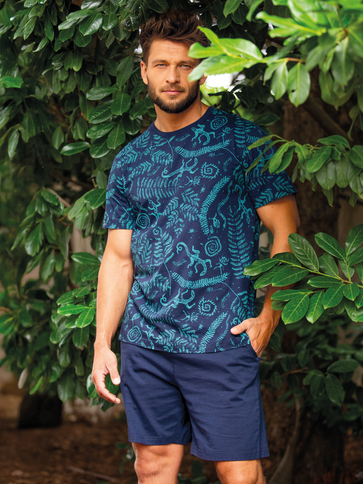 Intrygująca i wygodna męska piżama krótka – idealna dla Leśnych Odkrywców, którzy cenią oryginalne wzory i naturalny komfort.