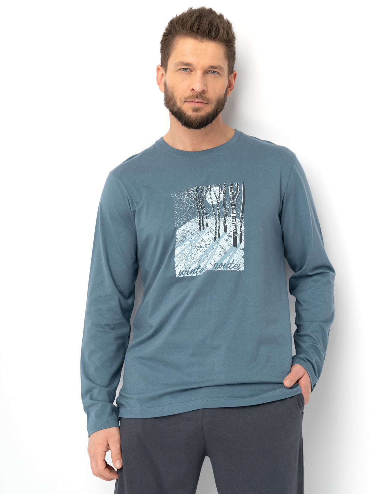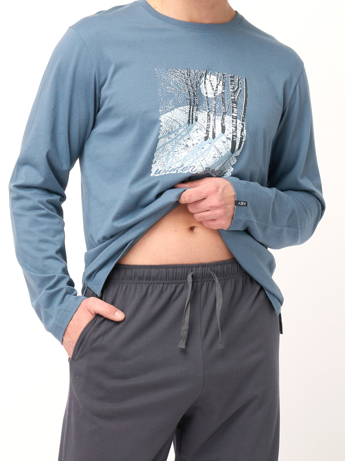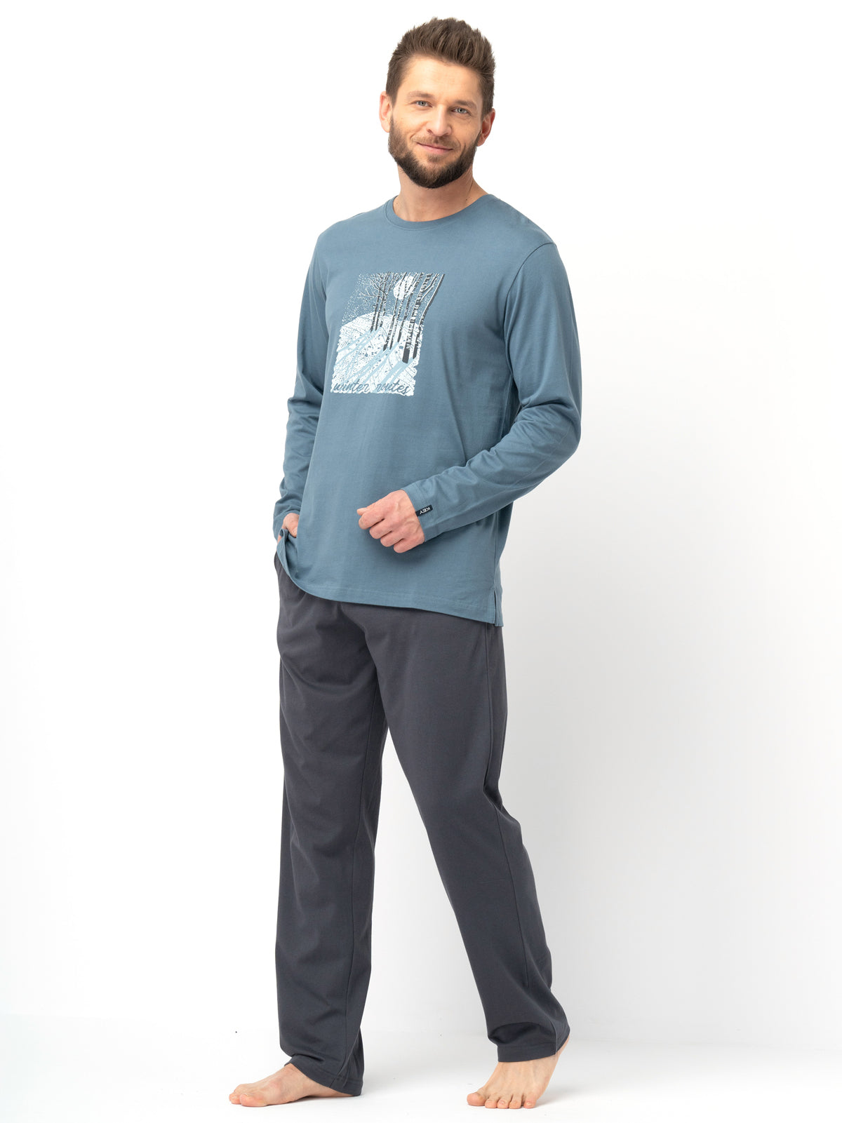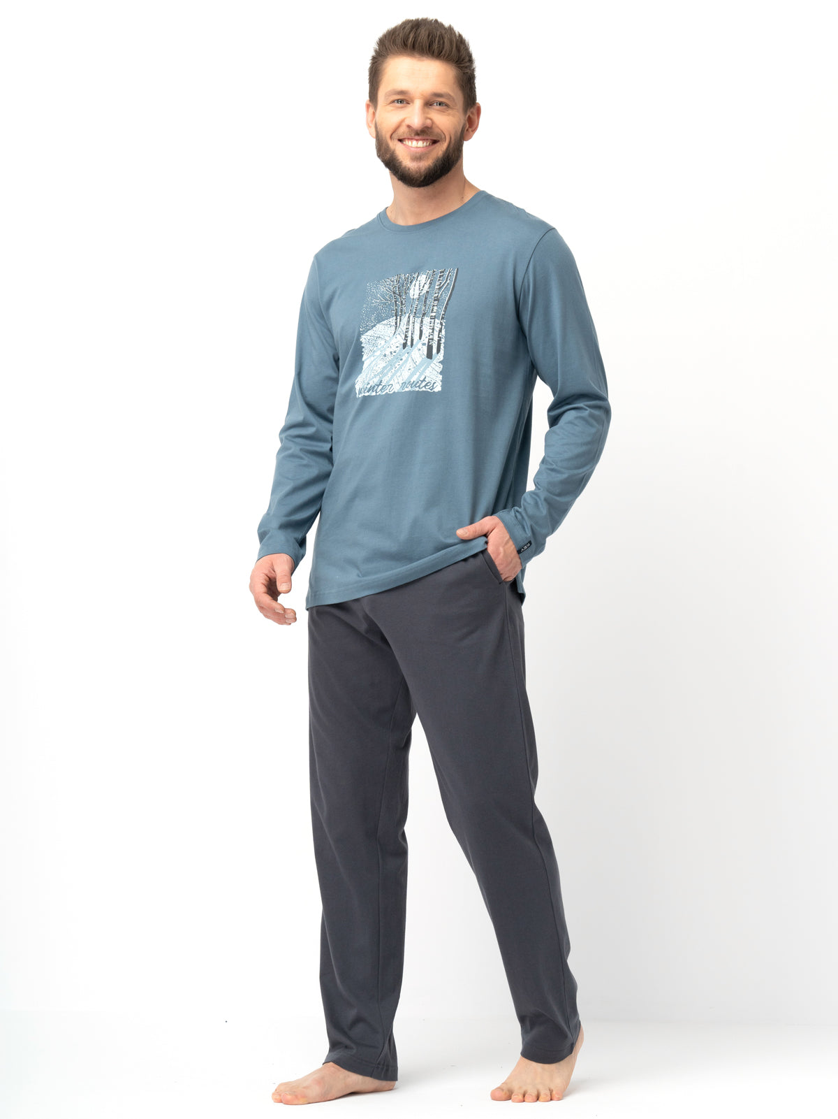 Klasyczna piżama męska, wykonana z miękkiej i trwałej dzianiny.