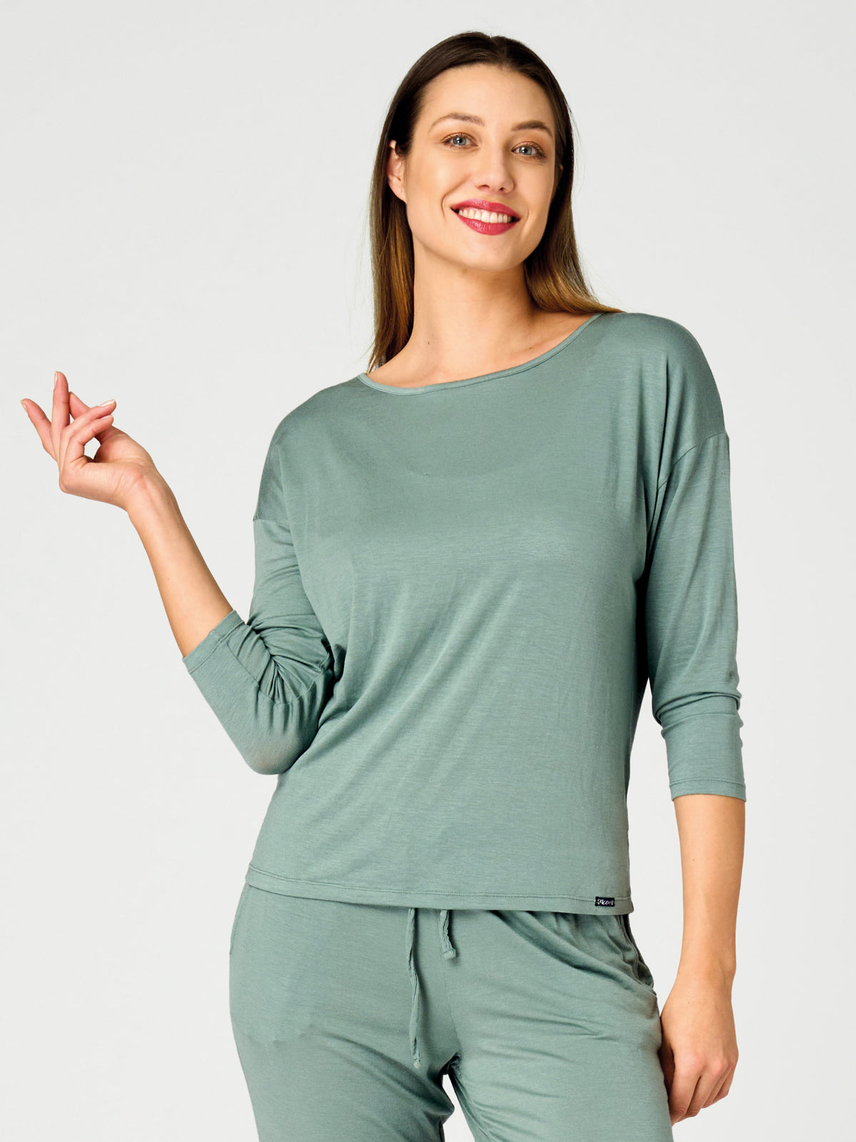 Relaksacyjna bluza z dodatkiem wełny merino - 3 sploty - zielona