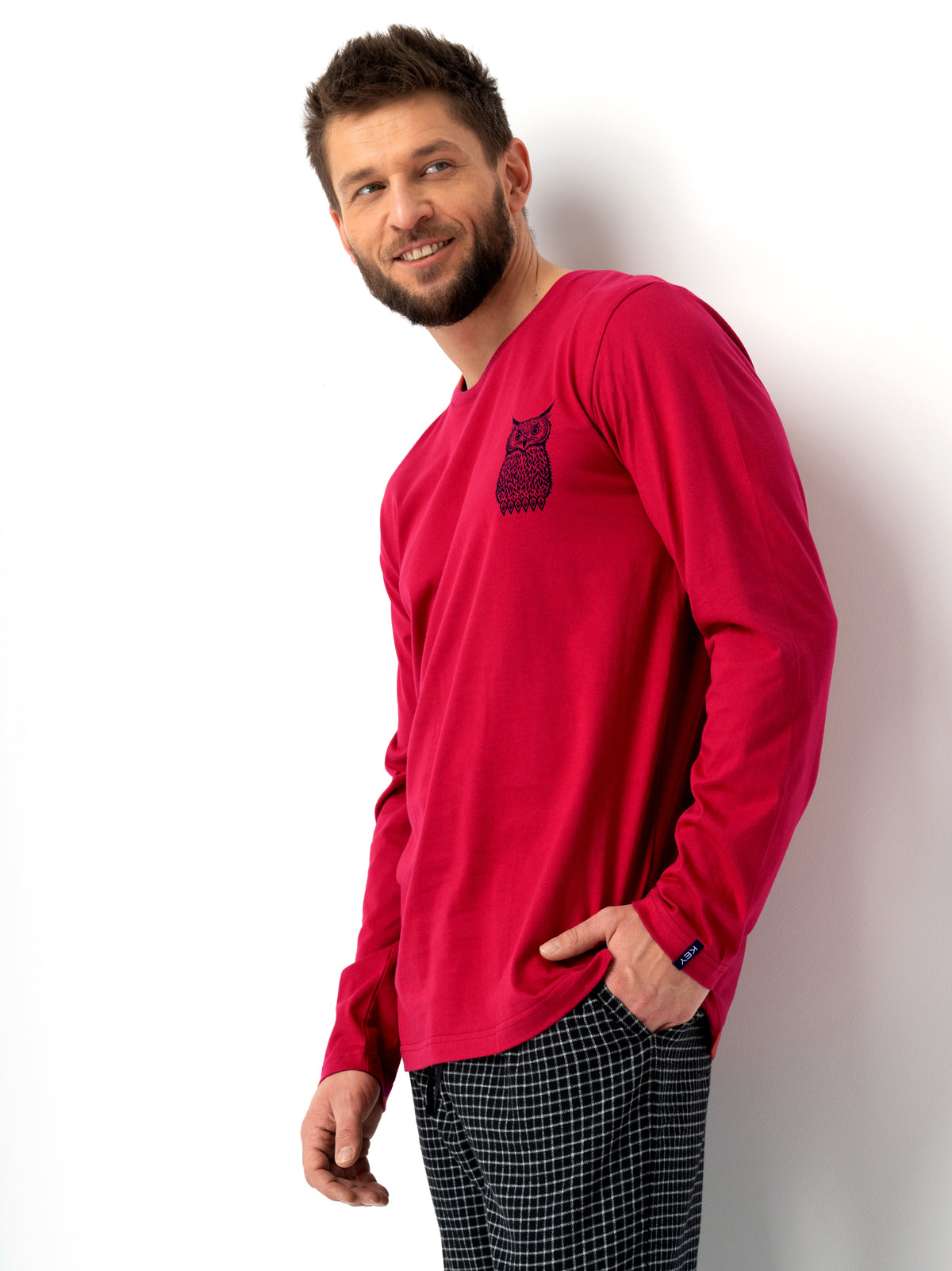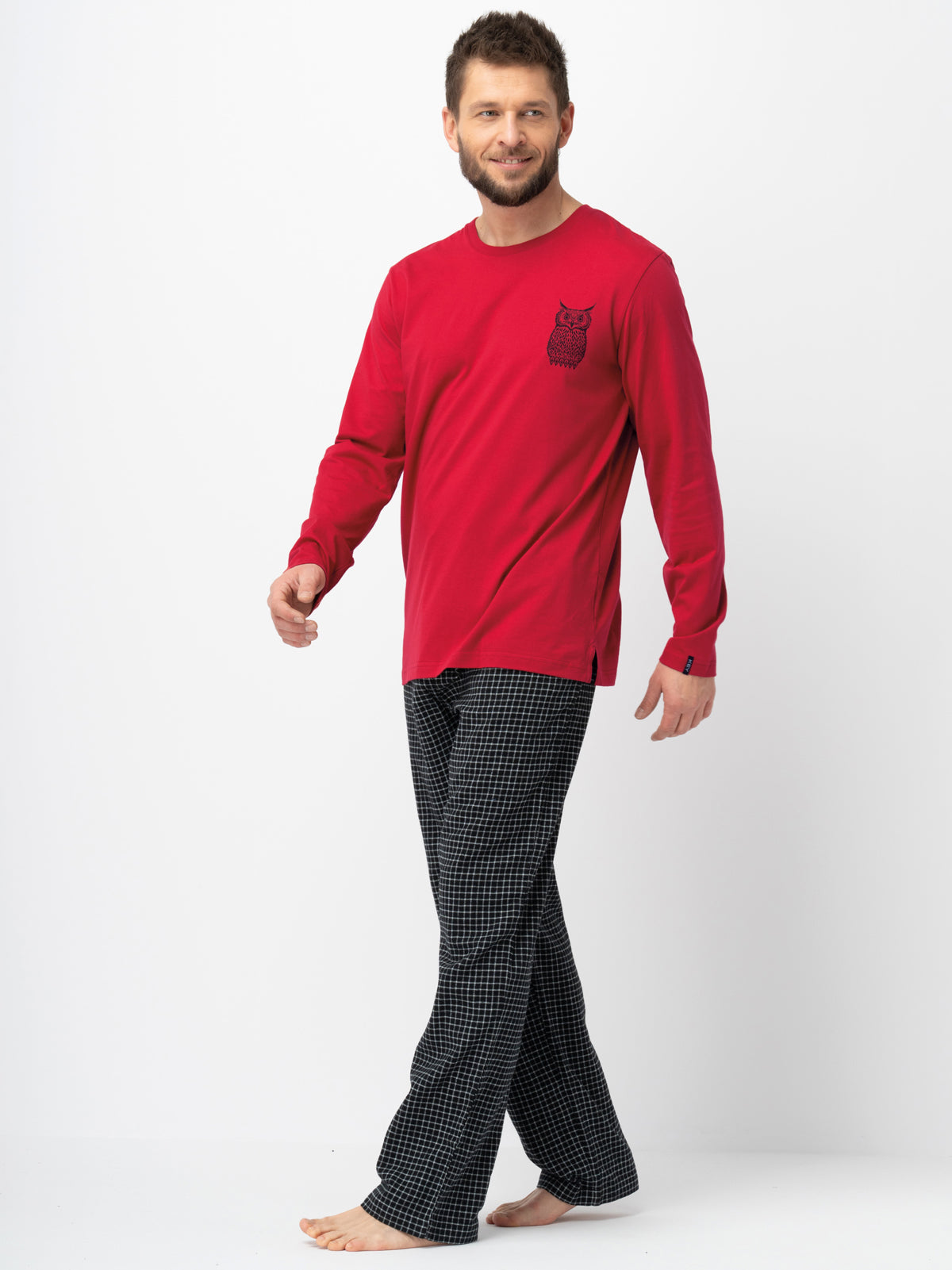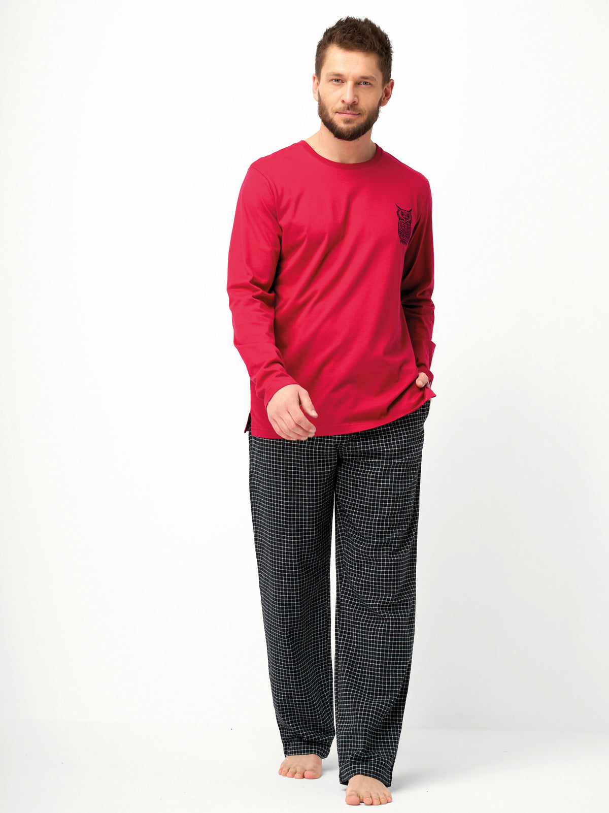 Ciepła męska piżama. Energetyczna czerwień w połączeniu z klasyczną czernią i bielą.